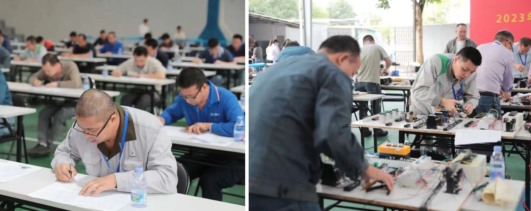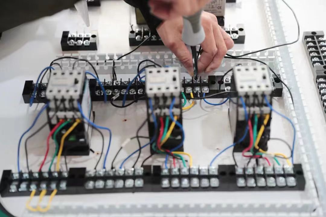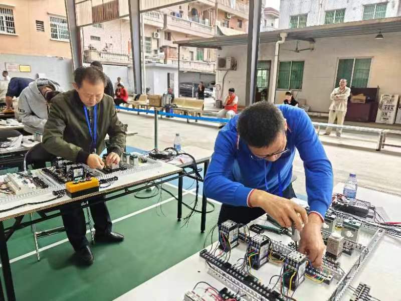 此次电工技能竞赛分理论和实操两部分,理论知识为闭卷笔试,考核参赛选手的电工专业基础知识 9.1版本ppt,安全操作规程等内容,实操部分为在规定时间内完成轮流进行徒手心肺复苏和星三角降压启动电路接线两项技能比拼。