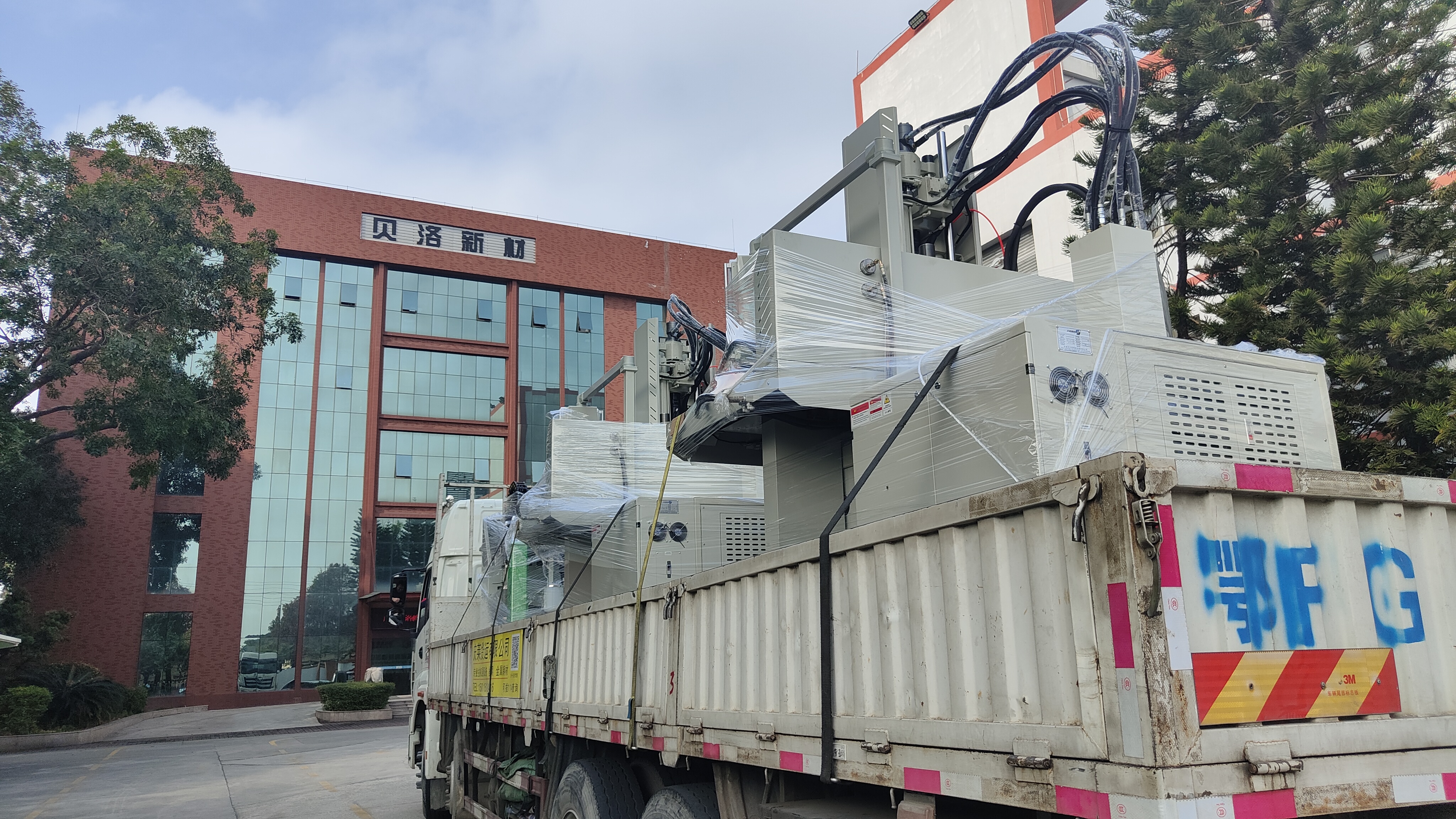 载着崭新的液态成型设备的大型载重汽车驶进工厂 9.1樱花ppt网站,经过专业人士的操作,卸下并安装在液态车间指定区域内,这预示着贝洛新材的液态成型产能将更上一层楼,按下产品交付的“快进键”。