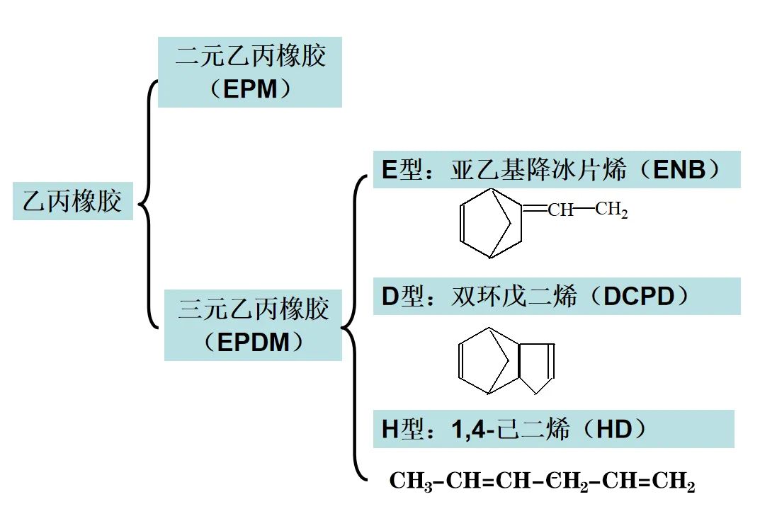 乙丙橡胶家族主要包括两大成员:二元乙丙橡胶(EPM)与三元乙丙橡胶(EPDM)。