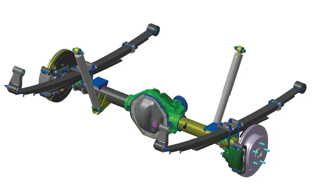 ▲如今很多车仍然在使用的钢板弹簧式悬挂