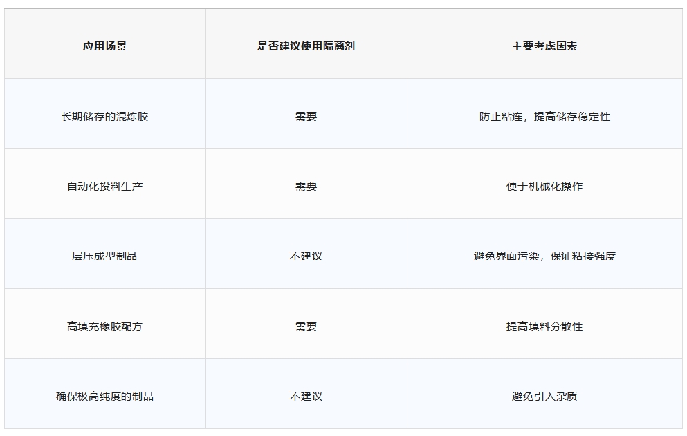 隔离剂的存在有助于防止胶料团聚,使得后续加工时的剪切力更均匀,避免混炼过程中因局部胶料过度剪切而导致的塑性不均。