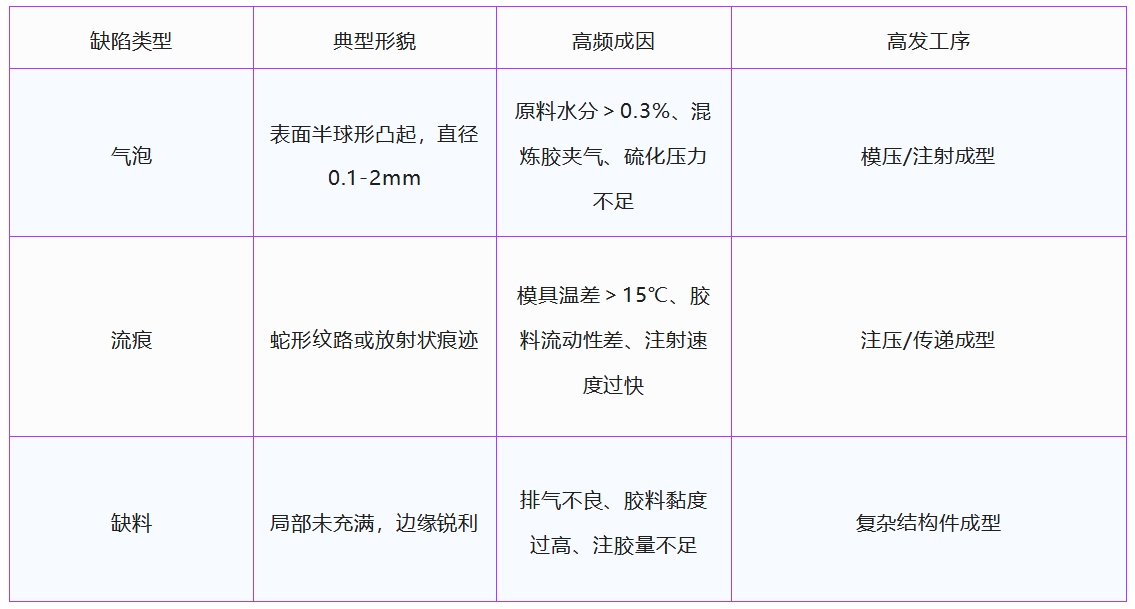 橡胶制品的外观质量不仅决定了产品的等级,还直接影响客户的满意度以及后续的性能表现,本文针对研发,质量,质检及生产人员,系统性地分析了橡胶制品表面常见的三大缺陷——气泡,流痕 9.1樱花ppt网站,缺料的成因,并提供了详细的应对策略和技术参数,以便在生产现场参考和执行,汽车连接器精密硅橡胶配件。