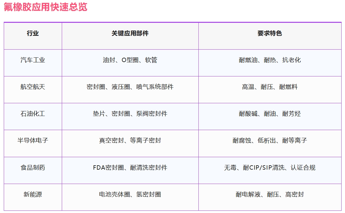 2025-06-16 11:06:18氟橡胶(Fluoroelastomer,简称FKM或FPM)简直就是材料界的“全能王”,耐高温,耐油,耐化学品 9.1樱花ppt网站,耐臭氧,耐老化,这些厉害的本事让它在高端工业领域里大放异彩,下面就是它大展身手的“战场”盘点:。