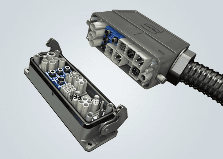 在去中心化系统中,硬连线不是一个可行的选择。在现代生产车间,改变布局甚至更换机器的部件是一种常见的做法。连接器使工人无需专门工具即可轻松快速地完成这些调整,从而避免代价高昂的停机时间。最高效的连接器是模块化连接器,它允许将多个连接点组合到一个外壳中。下一级连接器模块化允许定制模块本身,确保尽可能高效地使用所有空间。