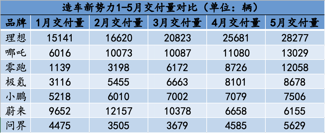 如上图所示,这是新势力们公布出来的交付量 樱花模板下载,以及1-5月份每个月的交付量。