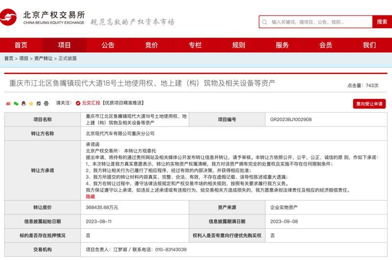 2023-08-24 14:08:59近日,一则名为“重庆市江北区鱼嘴镇现代大道18号土地使用权、地上建(构)筑物及相关设备等资产”的资产转让披露公告显示,转让方为北京现代汽车有限公司重庆分公司,转让底价为36 9.1樱花ppt网站,84亿元。要知道,当年该工厂的总投资为77,5亿元,这意味着北京现代重庆工厂五折挂牌出售。。